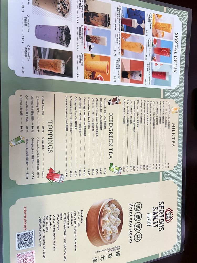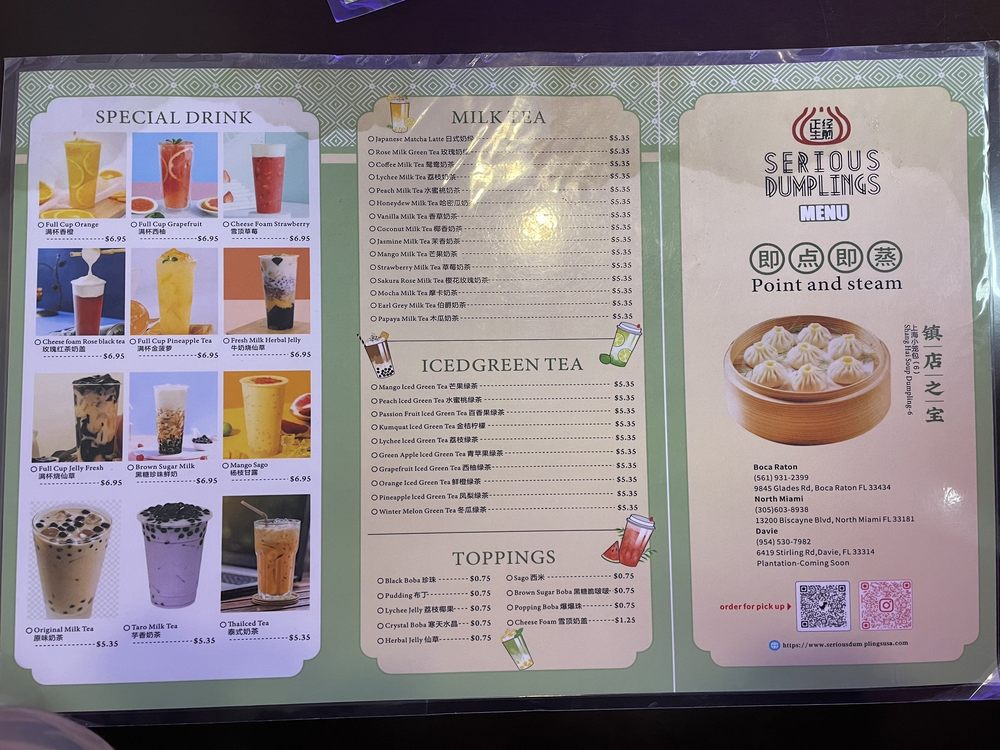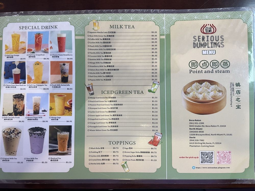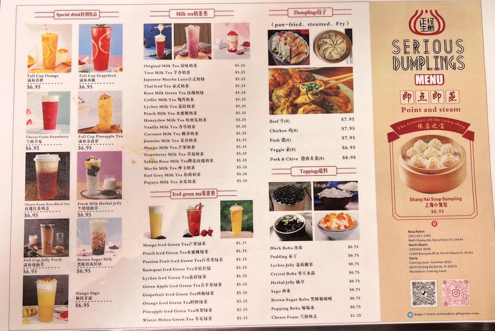 Serious Dumplings in Boca Raton offers a diverse menu of appetizers, dim sum, and soups, with options like Fried Shrimp Shumai, Scallion Pancake, Pork Sanji, and Hot and Sour Soup. The restaurant provides delivery, takeout, and reservations, making it convenient for customers. The modern ambiance and robot servers add a unique touch to the dining experience. Customers have positive feedback on the efficiency of service and the delicious, flavorful dumplings. The use of QR codes for ordering enhances convenience, although some may find it challenging. Overall, Serious Dumplings is a must-visit spot for dumpling lovers in Boca Raton, with its fresh and variety-packed menu.